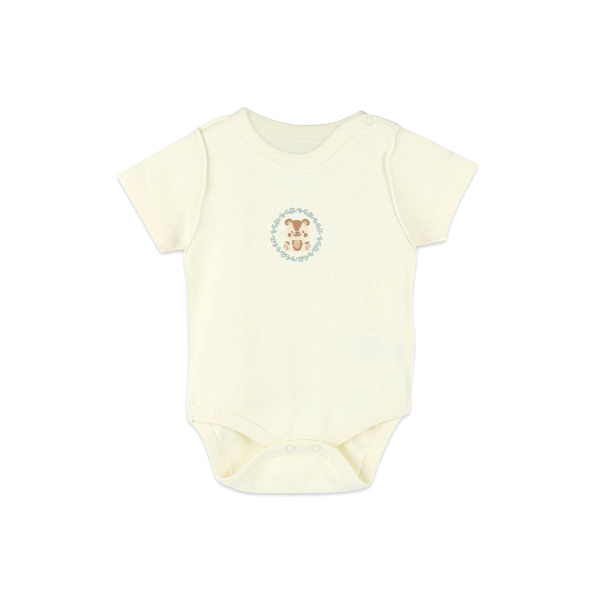 Надевается боди через голову, однако за счет широкой горловины сделать это просто и удобно. Свободный крой не сковывает движения. Между ножек имеется застежка с кнопками, с ее помощью можно легко переодеть ребенка или сменить подгузник. Украшает боди яркий принт на груди.