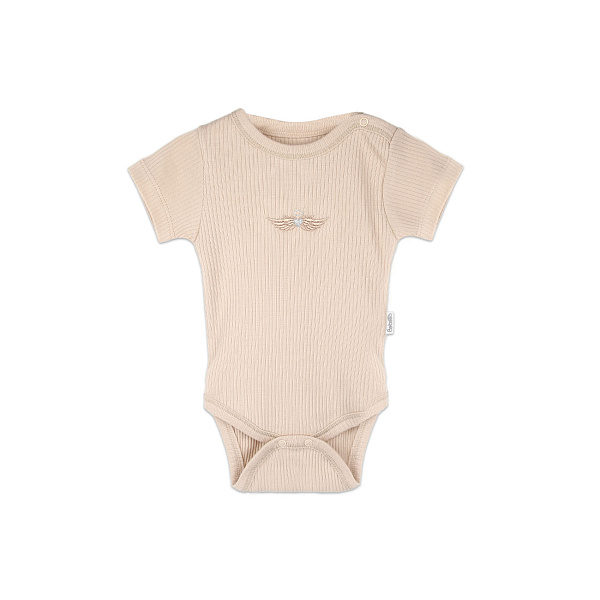 Боди с коротким рукавом для девочки сшито из однотонного мягкого трикотажа рибана нежного светло-коричневого оттенка. Спереди модель украшена вышивкой в виде сердца с крыльями. Эту модель удобно и легко снимать и надевать на малыша, что поможет любой маме сэкономить время при переодевании ребенка. Трикотажное боди можно надевать как самостоятельный предмет гардероба в летнее время или как нижнее белье зимой, добавляя к нему другую одежду. Края коротких рукавов прошиты фабричным швом. Низ изделия и горловина круглой формы обработаны мягкой трикотажной резинкой, комфортной к телу.