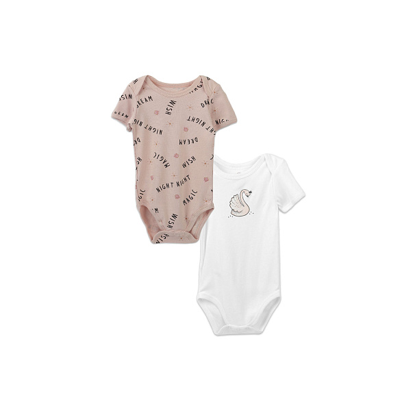 Уютный и мягкий хлопковый боди должен быть в гардеробе каждого малыша. Мягкая и приятная на ощупь хлопковая ткань дарит комфорт малышу, а также чудесно пропускает воздух. Низ боди обработан каймой в тон к основному цвету. Также имеются застежки в виде кнопок, которые позволят родителям быстро сменить подгузник. Рукава боди короткие и не сковывают движений, вырез горловины круглый, без воротника. Нежный дизайн с лебедями и надписями завершают образ детской одежды. Рекомендовано для детей ясельного возраста.