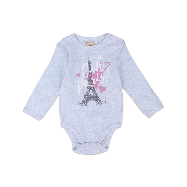 Этот боди спокойного светло-серого цвета станет идеальным решением для родителей, который хотят стильный гардероб малышки! Помимо неброского рисунка в виде Эйфелевой башни, у боди есть другие преимущества: вывернутые наружу швы, предохраняющие нежную кожу от натирания, а также трехточечная застежка на кнопках между ножек. Так же две кнопки на плече, позволяющие регулировать размер горловины и облегчать процесс переодевания и откидные царапки на рукавах, которые при необходимости можно спрятать и получить самые обычные рукава. На груди есть надпись на английском «Только Париж».