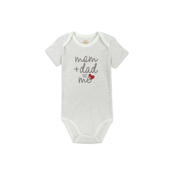 Порадуйте малыша не только комфортом, но и милым уютным дизайном с помощью мягкого хлопкового боди. Ткань из натурального хлопка хорошо пропускает воздух, обеспечивая сухость и тепло во время носки. Рукава изделия короткие и не сковывают движения маленьких ручек. Между ножек имеется застежка в виде кнопок, с их помощью легко переодеть малыша и сменить подгузник. Милый принт «Мама + папа = я» на бежевом полосатом фоне завершает образ забавного детского боди. Рекомендовано для детей ясельного возраста.