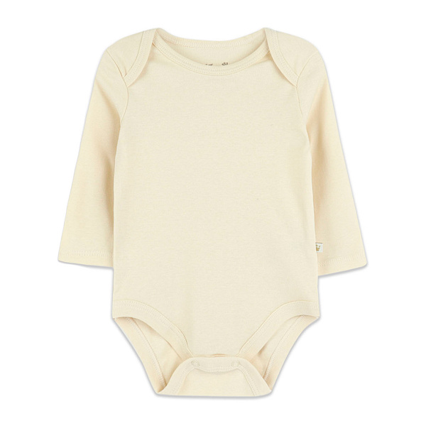 Боди имеет классический крой – совмещенная майка с длинными рукавами и трусики с клапаном на кнопках. Клапан позволяет быстро переодевать малыша, вовремя убирать и подкладывать подгузник. Круглая эластичная горловина без труда пропустит голову ребенка при его одевании.