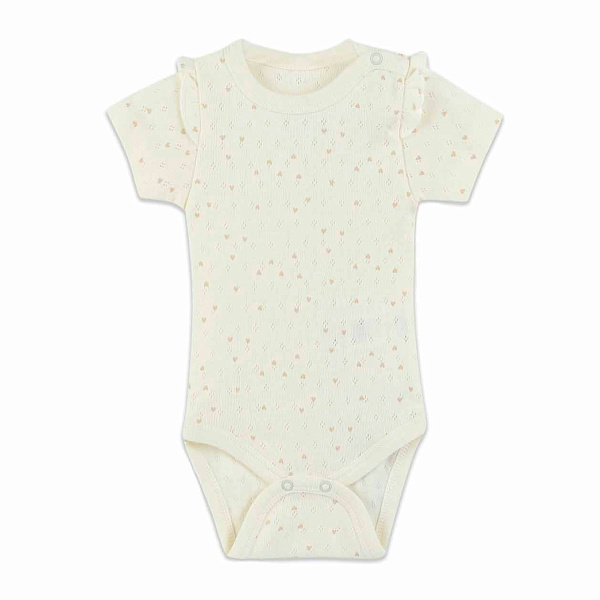 Боди с оборками на плечах принт сердечки светло-бежевое