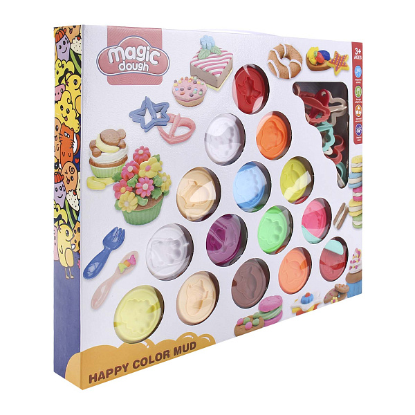 Большой набор для лепки Magic Dough предназначен для детей старше 3 лет и предлагает безграничные возможности для творчества. В комплект входит 15 контейнеров с пластилином разных цветов. Этот многообразие позволяет создавать удивительные фигурки и композиции.
