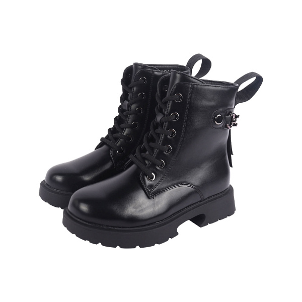 Утепленные ботинки разработаны с учетом анатомических особенностей ребенка и последних модных тенденций. Они понравятся любой девочке школьного возраста. Модель привлекает внимание лаконичным дизайном, украшена металлическим декором. Шнуровка позволяет скорректировать полноту, обеспечивает комфортную посадку на ноге. Широкий язычок защищает от холода и атмосферных осадков.