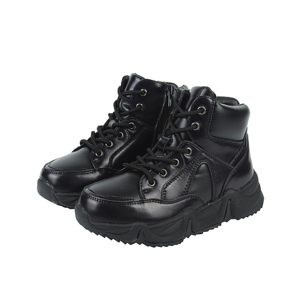 Стильные и модные демисезонные ботинки предназначены для детей школьного возраста. Верх обуви пошит из комбинации кожи и текстиля. Сочетание материалов обеспечивает тепло и комфорт стопам, кожа не склонна к царапинам и препятствует проникновению холода. Подкладка и стелька выполнены из текстиля и утеплены черным флисом. Черная массивная подошва из термопластичной резины (ТПР) не скользит на дорогах, устойчива к низким температурам и равномерно распределяет нагрузку на ноги благодаря упругости. В качестве застежки использована молния сбоку ботинок, а также шнуровка, чтобы дополнительно утянуть обувь на ноге.