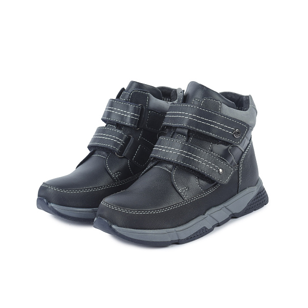 Верх черных сапог изготовлен из искусственной кожи и текстиля, подошва из термопластичной резины, а подкладка из искусственного меха. Благодаря липучкам, ботинки легко надеть и снять, что позволяет ребенку быть самостоятельным и развивать навыки аккуратности.