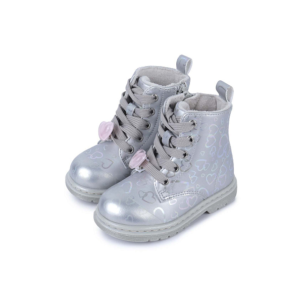 Ботинки Pasito демисезонные с принтом сердечки серебристые