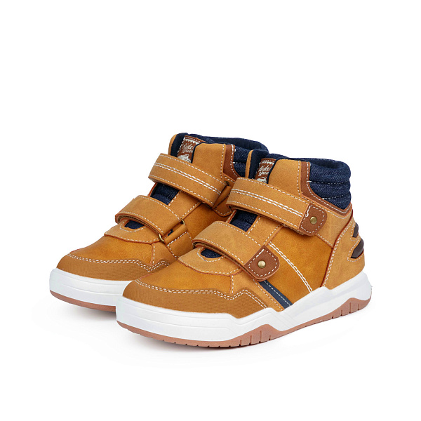 Ботинки из флокированной коричневой кожи имеют дорогой вид благодаря использованию фактуры такого типа. Обувь подойдет для мальчиков дошкольного возраста и легко дополнит гардероб в городском или спортивном стиле. Ребенок чудесно справится с самостоятельным обуванием благодаря двум широким застежкам-липучкам.