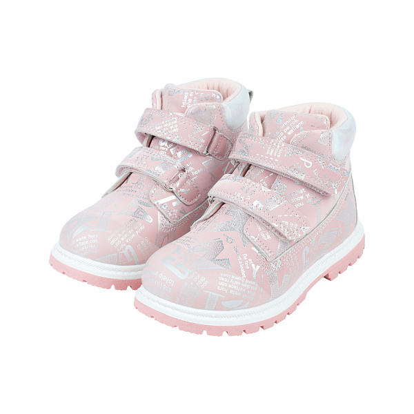 Ботинки Pasito на двойной липучке принт с надписями и буквами розовые