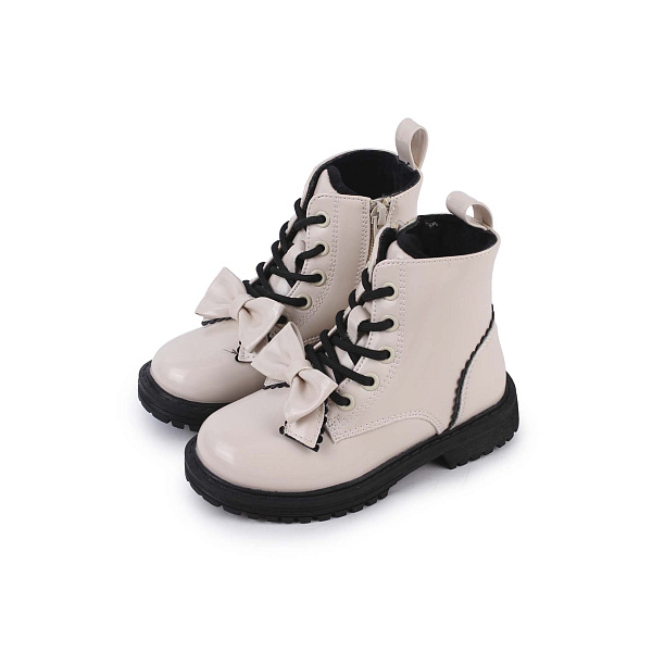 Ботинки Pasito на шнуровке и молнии с бантом бежевые
