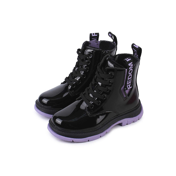 Ботинки Pasito с фиолетовой надписью fredom и цветной подошвой черные