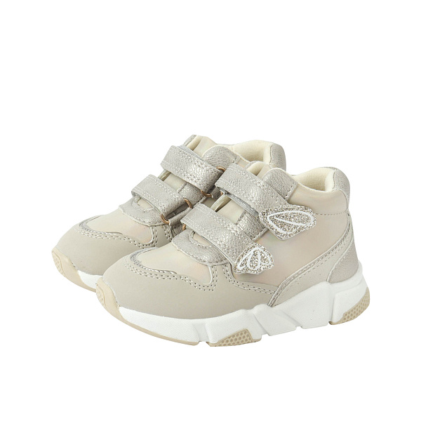 Нарядные и удобные ботинки сделают прогулку маленькой девочки комфортной и безопасной. При создании модели приняты в расчет базовые потребности и анатомические особенности детей. Обувь имеет широкий подъем, застегивается двумя ремешками с липучками. Для оформления использована золотистая цветовая гамма и блестки. Оригинальный дизайн поднимет ребенку настроение, позволит создать немало стильных образов.