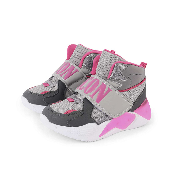 Ботинки Pasito с массивной липучкой и розовыми вставками подошва с огоньками серые