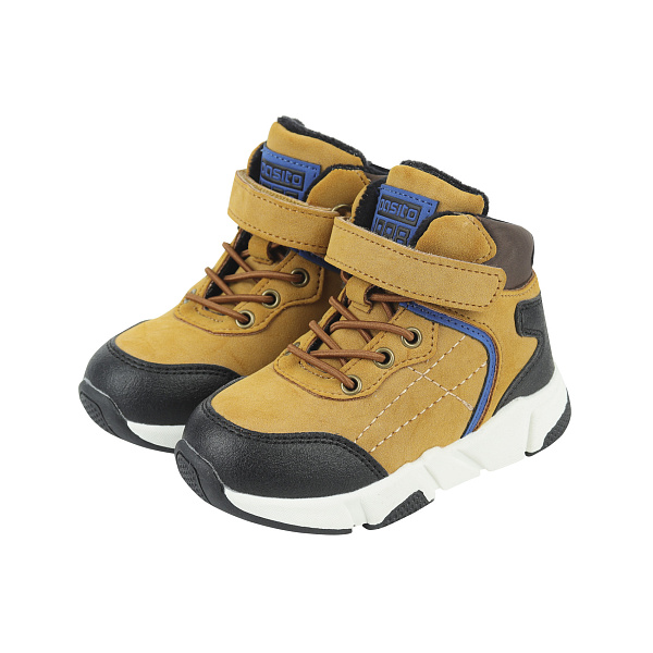 Утепленные демисезонные ботинки изготовлены из искусственной кожи, материал приятный на ощупь, хорошо сохраняет тепло и не склонен к появлению царапин. Подкладка и стелька изготовлены из текстиля. Теплый флис внутри сохранит ножки малыша в тепле и комфорте даже при низких температурах. Подошва из ТПР препятствует скольжению, выдерживает перепады температур и равномерно распределяет нагрузку на ноги за счет эластичности материала. Ботинки фиксируются на ноге с помощью липучки и шнуровки.