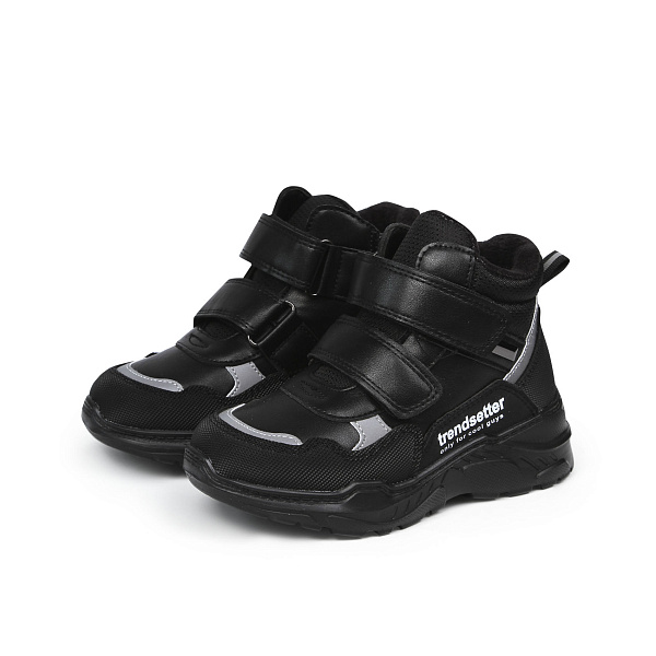 Классные утепленные ботинки предназначены для мальчиков дошкольного возраста. Верх обуви изготовлен из черной кожи с контрастными светлыми вставками, внутренняя поверхность утеплена мехом. Ботинки кроссовочного типа фиксируются с помощью двух липучек, поэтому ребенок сможет обуваться в детском саду без помощи взрослых. В качестве декоративных элементов производитель выбрал текстовую надпись и металлическую деталь сбоку. Подошва изготовлена из ТПР, материал препятствует скольжению и равномерно распределяет нагрузку за счет упругости.