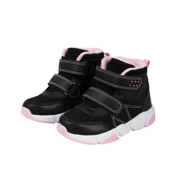 Утепленные ботинки Pasito подходят для девочки младшего возраста. Модель выполнена в контрастном черно-белом дизайне с розовыми вставками. Подошва широкая, что делает ходьбу комфортной. В качестве застежки предусмотрена плотная липучка. Так ребенок может легко обуть или снять ботинки без помощи взрослых. Мягкая стелька снимается для очитки или стирки. Модель изготовлена из комбинированных материалов, не пропускает влагу и сохраняет тепло. Утепление из мягкого трикотажного полотна с подкладкой из в верхней части.
