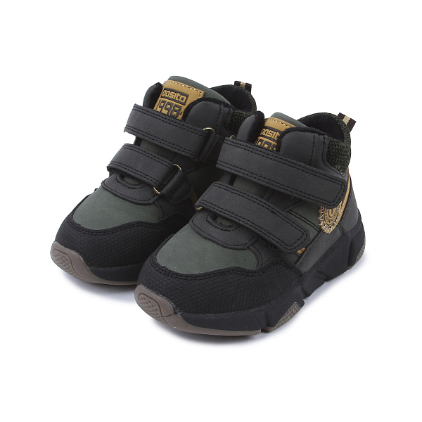 Ботинки Pasito утепленные на двойной липучке с черно-желтыми вставками хаки