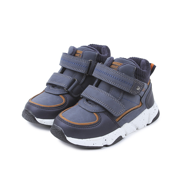 Ботинки Pasito утепленные на двойной липучке с оражевыми элементами синие