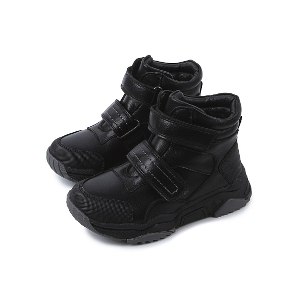 Утепленные ботинки для мальчика дошкольного возраста имеют симпатичный дизайн и комфортно сидят на ногах. Ботиночки черного цвета подойдут для прогулки в парке или во дворе. Широкий язычок предотвращает попадание влаги в ботинок. Подошва выполнена из легкой и нескользящей термопластичной резины (ТПР). Благодаря фигурным протекторам обеспечивается надежное сцепление с поверхностью дороги. Верх ботинок сделан из искусственной кожи, которая легко моется. Подкладка и стельки изготовлены из текстиля. Надевать и снимать ботинки легко и просто благодаря двум застежкам на липучке. В случае необходимости ребенок вполне справится с этой задачей самостоятельно или под присмотром мамы.