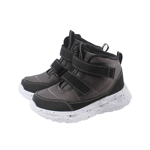 Утепленные ботинки для мальчика выполнены в стильном сером цвете с чёрными вставками и белой подошвой с мелкими чёрными вкраплениями, придающими модели современный и динамичный вид. Модель оснащена двумя удобными застёжками-липучками, обеспечивающими надёжную фиксацию стопы. Подошва оборудована встроенной светодиодной подсветкой, которая плавно загорается при каждом шаге, создавая эффект мерцающего светящегося следа и повышая видимость ребёнка в условиях плохой освещённости. Это делает ботинки не только функциональными, но и привлекательными для детей.