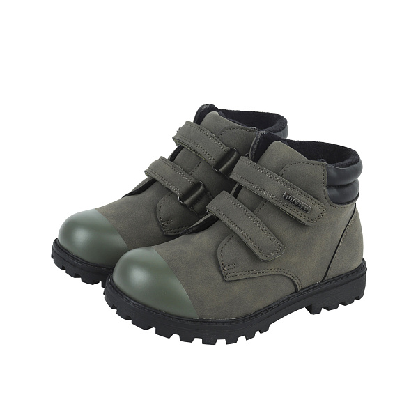 Ботинки Pasito утепленные на липучках с гладким носком с черными вставками хаки