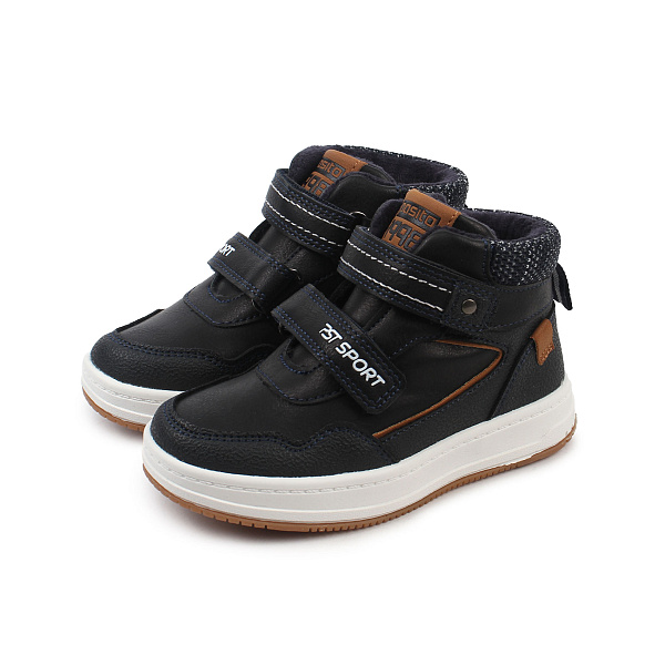 Утепленные ботинки для мальчика выглядят стильно и современно. Синий цвет с аккуратными коричневыми деталями придают им выразительность и динамичность. Высокая берца защищает щиколотку и придает обуви спортивный вид. Две широкие липучки обеспечивают надежную фиксацию и легко регулируются, позволяя быстро надевать и снимать ботинки.