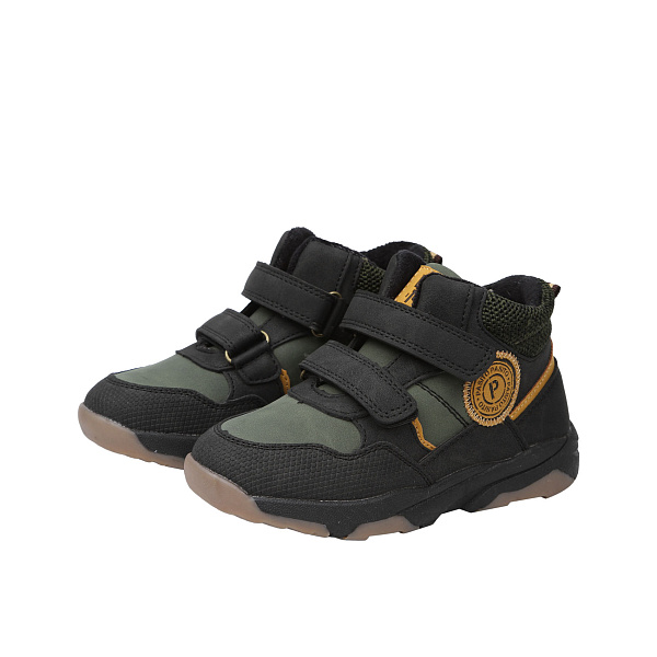 Классические утепленные демисезонные ботинки из эластичной кожи предназначены для детей ясельного возраста. Верх ботинок пошит с использованием искусственной кожи, материал хорошо пропускает воздух и не склонен к появлению царапин, модель дополнена текстильными вставками. Подкладка и стелька из мягкого текстиля приятны к телу, они уберегут ноги малыша от холода и влаги. Изнутри есть дополнение с виде мягкого флиса. Подошва утолщенная, изготовлена из ТПР, материал не скользит на поверхностях, не оставляет полос и не утяжеляет ботинок. Фиксация на ноге осуществляется с помощью двух липучек. Цвет: хаки.