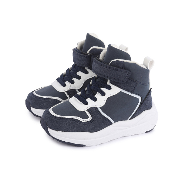 Ботинки Pasito утепленные на липучке и шнуровке бело-синие