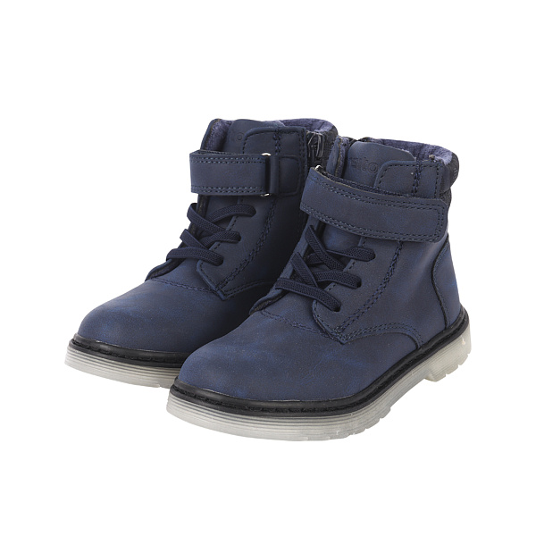 Ботинки Pasito утепленные на липучке со шнуровкой с прозрачной подошвой синие