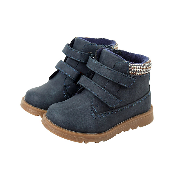 Теплая и легкая обувь на рифленой подошве из термопластичной резины (ТПР) отлично впишется в демисезонный гардероб модника. Ботинки в практичном синем цвете дополнены парой ремешков с липучками. С их помощью несложно скорректировать полноту, обеспечить комфортную посадку. Верх обуви изготовлен из искусственной кожи и текстильных вставок. В составе подкладки и стельки присутствует 80% натурального хлопка. Это создает все условия для сохранения тепла и полноценного проветривания ног. Подошва из ТПР не скользит на дорогах и не утяжеляет ботинок.