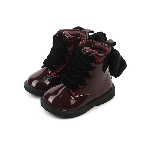 Ботинки Pasito утепленные на молнии с бархатными шнурками и бантом лаковые бордовые