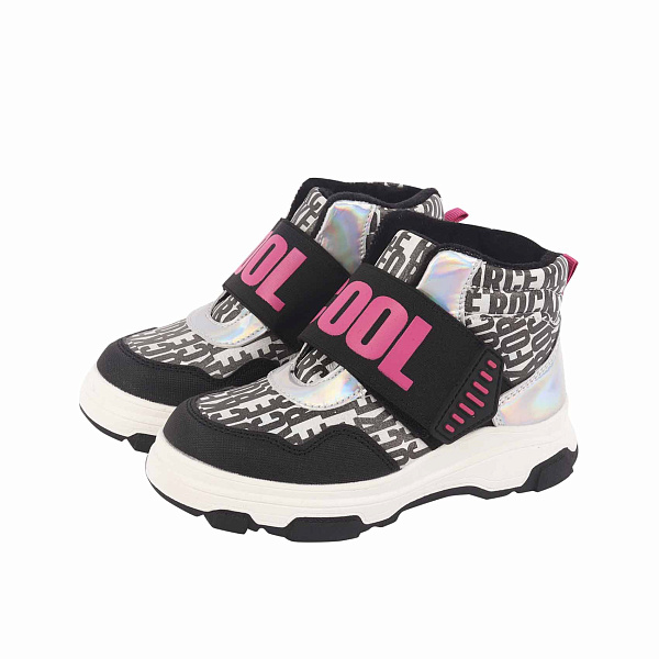 Ботинки Pasito утепленные на широкой липучке с розовой надписью Cool бело-черные