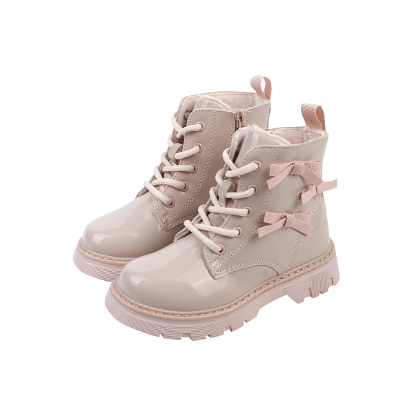 Ботинки Pasito утепленные на шнурках и молнии с милыми розовыми бантиками лаковые пастельно-розовые