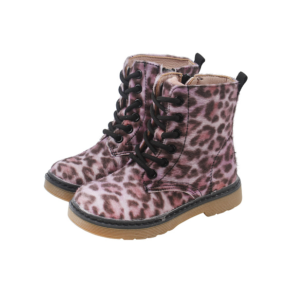 Утеплённые ботинки для девочки выделяются модным леопардовым дизайном и оригинальной текстурой шёрстки, которая придаёт им эффектный и стильный вид. Мягкая на ощупь поверхность напоминает натуральный мех, добавляя модели уют и шарм. Благодаря классической шнуровке и молнии, ботинки удобно надевать и снимать, обеспечивая надёжную фиксацию на ноге.