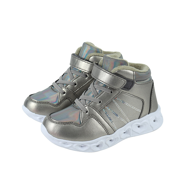 Подошва толстая, изготовлена из ЭВА, материал не утяжеляет ботинок и препятствует проникновению холода. По бокам подошвы установлены световые элементы, они не только создают мерцание при ходьбе, но и повышают безопасность ребенка на дорогах. Ботинок плотно завязывается шнурком и дополнительно закрепляется верхней застежкой-липучкой. Рекомендовано для детей дошкольного возраста.