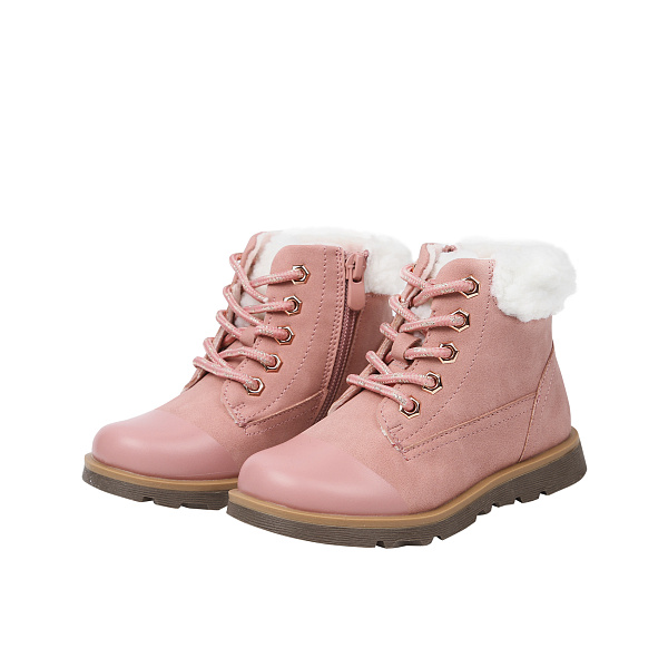 Яркие ботиночки для самых маленьких принцесс изготовлены из кожи сверху и утеплены овчиной внутри для максимального комфорта детской ножки. Утеплитель не парит ступню, сохраняя тепло тела и не впуская холод извне. Верх ботинка также декорирован натуральной овчиной белого цвета, подошва – коричневая, изготовлена из качественное термопластичной резины с высокой устойчивостью к износу и повреждениям. Модель застегивается на шнуровку, и не сползает с ее помощью даже во время активного времяпровождения. Стелька несъемная, дополнена супинатором от плоскостопия, задник жесткий.