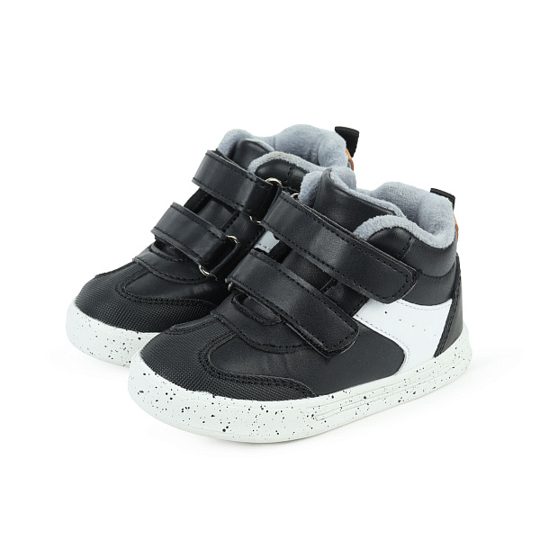 Ребенку ясельного возраста придутся по душе стильные и удобные утепленные ботинки, которые не уступают по дизайну взрослым моделям. Верх ботинок пошит из текстиля и кожи, задник закрытый. Подкладка и стелька выполнены из из мягкого и приятного на ощупь текстиля и утеплением из флиса. Подошва из ТПР полимерная, она не утяжеляет ботинок и препятствует скольжению. Застегивается ботинок двумя липучками – застежка плотно фиксирует ботинок на ноге и облегчает переобувание. Модель выполнена в сочетании черного, белого, серого и горчичного цветов – дизайн одновременно яркий и нейтральный, поэтому подойдет под вещи любых цветов. Завершает дизайн белая подошва с черной крошкой.