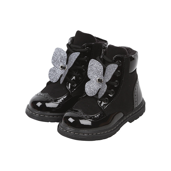 Дети дошкольного возраста обожают веселые прогулки на улице. Именно поэтому их одежда и обувь должны надежно защищать от холода и перемерзания. Утепленная модель ботинок предназначена для девочки дошкольного возраста. Немаркая обувь в сдержанном дизайне легко очищается от уличной грязи. Она изготовлена из стойкой к износу лаковой кожи, фиксируется на ноге на шнуровке, декорированной дизайнерским элементом из кожи. Подошва в изделии невысокая, прорезиненная, выполнена из ТПР. Носок и задник укреплены дополнительными лоскутами ткани для защиты от царапин и повреждений.