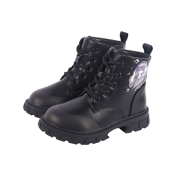 Утепленные ботинки обеспечат комфорт на прогулке в межсезонье девочке дошкольного возраста. Стильная модель органично впишется в сезонный гардероб ребенка, позволит создать немало ярких образов. При создании обуви в расчет приняты детские потребности и последние модные тенденции. В качестве декора использовано контрастное изображение в стиле аниме. Удобная боковая молния дополнена шнуровкой, позволяющей отрегулировать полноту. Усиленный задник гарантирует правильную постановку стопы.