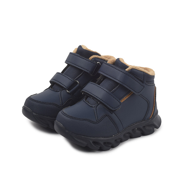 Ботинки Pasito утепленные с коричневыми вставками подошва с огоньками синие