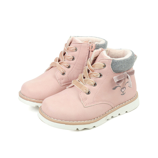Симпатичные утепленные ботинки для девочки ясельного возраста не дадут ножкам замерзнуть в холодное время года. Верх обуви выполнен из искусственной кожи с текстильными вставками. Застежки две – шнуровка по верху голенища и молния по боковой стороне. Шнуровка плотно защищает ногу от проникновения снега и холодного воздуха, молния облегчает надевание. Подкладка и стельки изготовлены из хлопчатобумажного утеплителя. Подошва выполнена из термопластичной резины. Такая подошва упругая, влагостойкая и эластичная, не скользит на поверхностях.