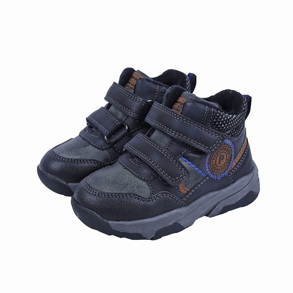 Утепленные демисезонные ботинки предназначены для мальчиков младшего возраста. Закрытый задник надежно фиксирует голеностоп, а супинатор поддерживает продольный свод стопы. Застегивается обувь на две плотные липучки. Верх выполнен из искусственной кожи с текстильными вставками. Утолщенная форма из прорезиненной подошвы (ТПР) делает обувь нескользящей и снижает нагрузку на ноги. Подкладка и стелька изготовлены из приятного на ощупь текстиля. Эта модель станет чудесным выбором для маленьких модников.