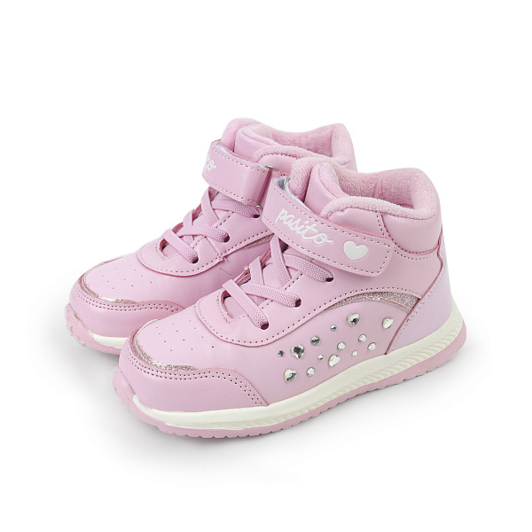 Ботинки выполнены в нежном розовом цвете, подошва – в бело-розовом.