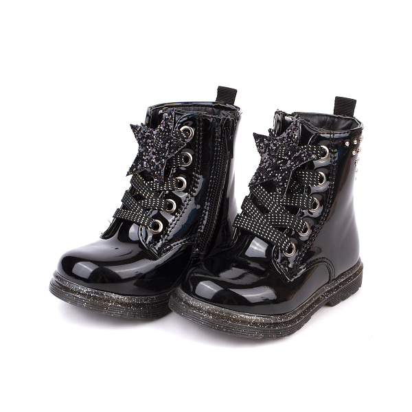 Модные ботинки Pasito чудесно впишутся в гардероб девочки ясельного возраста. Модель выполнена в черном цвете, имеет удобную застежку. Шнуровка в передней части изделия продублирована удобной молнией сбоку. Это позволяет отрегулировать полноту, а также упрощает переобувание. Толстая подошва из термопластичной резины (ТПР) не скользит на поверхности, не стирается, не впитывает влагу. Верх обуви изготовлен из искусственной кожи. Текстильная подкладка и стелька отлично пропускают воздух, обеспечивая естественную вентиляцию. Ботиночки универсальны в применении, подходят к любой верхней одежде.
