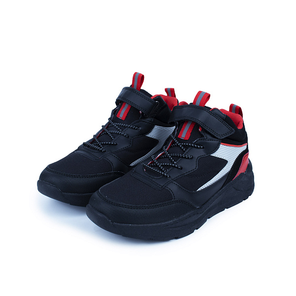 Стильные ботинки понравятся мальчикам не только внешним видом, но и комфортом. Внешне похожие на кроссовки, их можно легко носить в школу, на прогулки или поездки за город. Верх обуви немаркий и легко очищается от пыли и загрязнений. В качестве застужки использованы липучка и шнуровка - это обеспечит плотную фиксанию обуви на ноге и облегчит переобувание. В качестве акцента использованы ярко-красные вставки, которые контрастно выделяются на фоне темных ботинок. Массивная подошва не скользит на поверхностях и равномерно распределяет нагрузку на стопы.