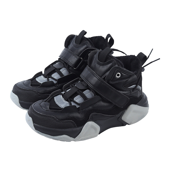 Ботинки TIBURON утепленные на липучке и шнурках с рельефной подошвой черные