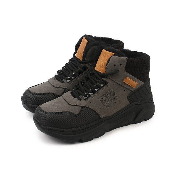 Утепленные сапоги для мальчика выполнены в сером цвете с черными и коричневыми деталями, создающими стильный и современный образ. Высокий берец с шнуровкой и боковой молнией обеспечивает удобную посадку и позволяет легко надеть и снять обувь. Модель выглядит прочной и надежной, с усиленным носком и толстой подошвой с хорошим протектором, которая не замерзает при низких температурах. Сапоги подходят для зимних прогулок и активных игр на улице.