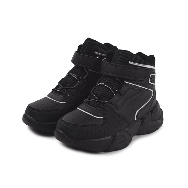 Стильная зимняя обувь бренда «Tiburon» для мальчиков школьного возраста обладает эффектным черным цветом с белыми вставками.