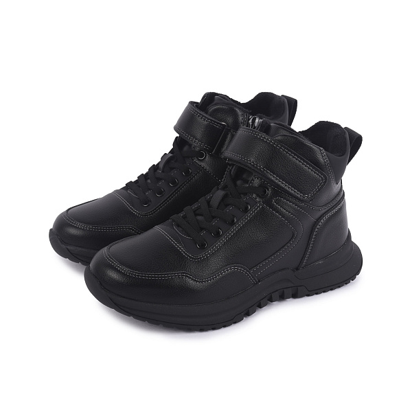 Утепленные ботинки идеально впишутся в сезонный гардероб мальчика школьного возраста. Модель выглядит стильно и современно, разработана с учетом потребностей ребенка. Шнуровка в передней части дополнена фиксирующим ремешком с липучкой. Это позволит подогнать обувь по ноге. Боковая молния ускорит процесс переобувания. В качестве украшения применяется эффектная строчка. Она подчеркивает лаконичный дизайн.